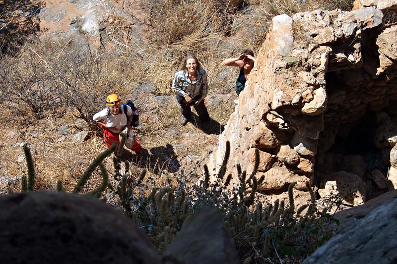 Die obere Tageslichtöffnung rechts im Bild ist gut zu sehen Near Trachila Peleponnesos Greece is the location of the cave of Katafigi Trachila The upper opening of the cave in the right side of the picture is good visible LINK: MANI 19.6.2011 |