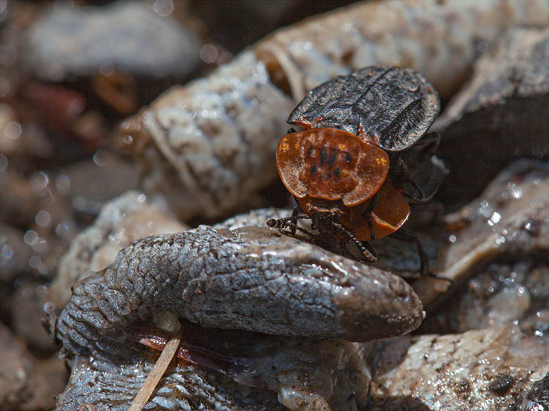 Auf Schlangen- kadaver zeigt die lebensweise als Aasfresser At snake cadaver as scanvenger Fundort: Pauliberg, Burgenland Österreich Location: Pauliberg , Burgenland, Austria